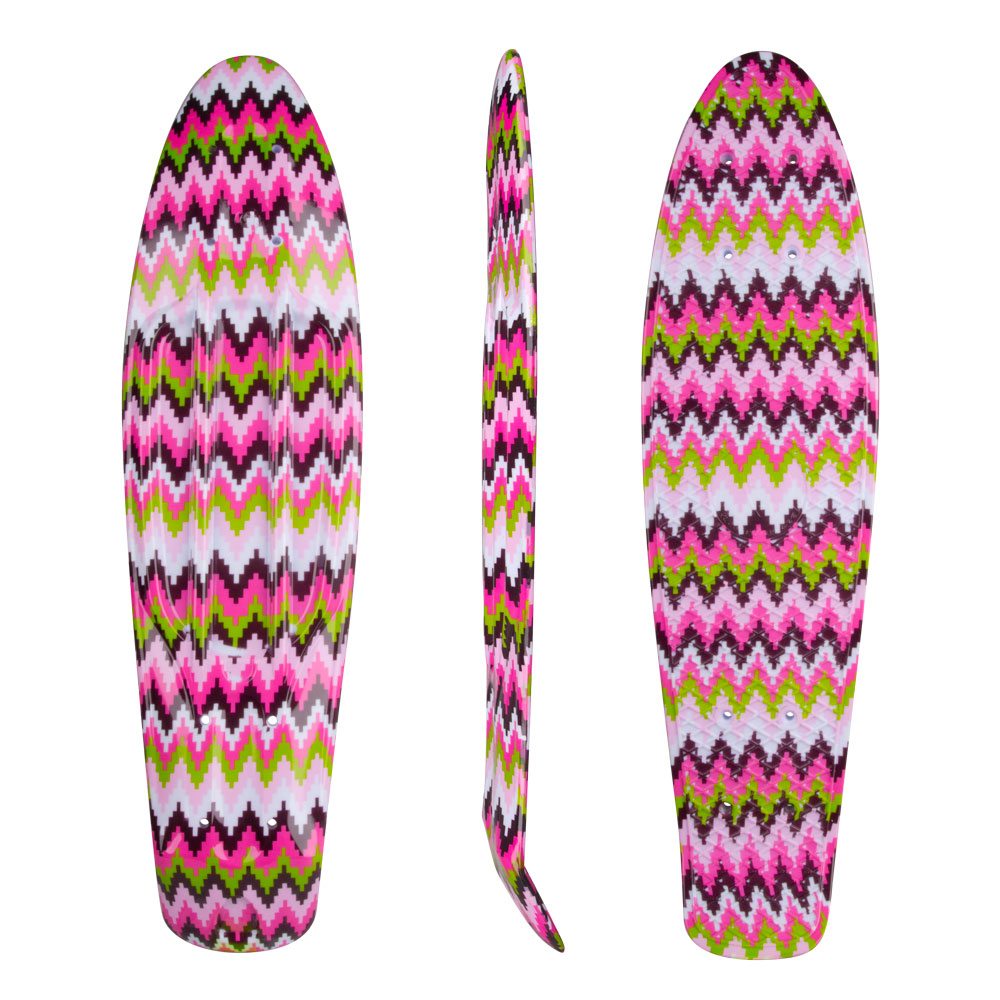 Polypropylénová kicktail doska pre pennyboard s farebným vzorovaním, protišmykové mriežky na vrchnej časti. viac