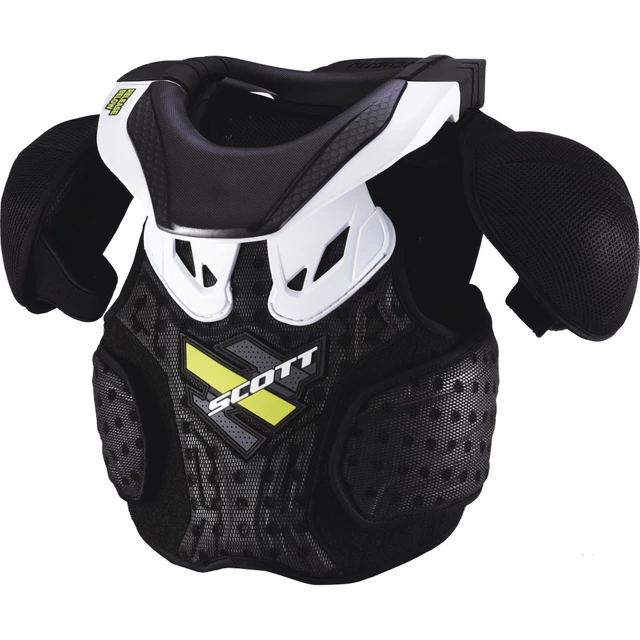 Chránič tela SCOTT Neck Armor Junior je prvý chránič svojho druhu, ktorý kombinuje ochranu krčnej chrbtice a trupu pre juniorských jazdcov. Cieľom je ochrániť mladých motorkárov, ktorí sú viac náchylní k zraneniu hrudníku, ramien, chrbta a krku. Náraz-pohlcujúci materiál 3DF poskytuje ochranu, pohodlie a ventiláciu hornej polovice tela. Poteší i jednoduchosť a rýchlosť odopínania chrániča.