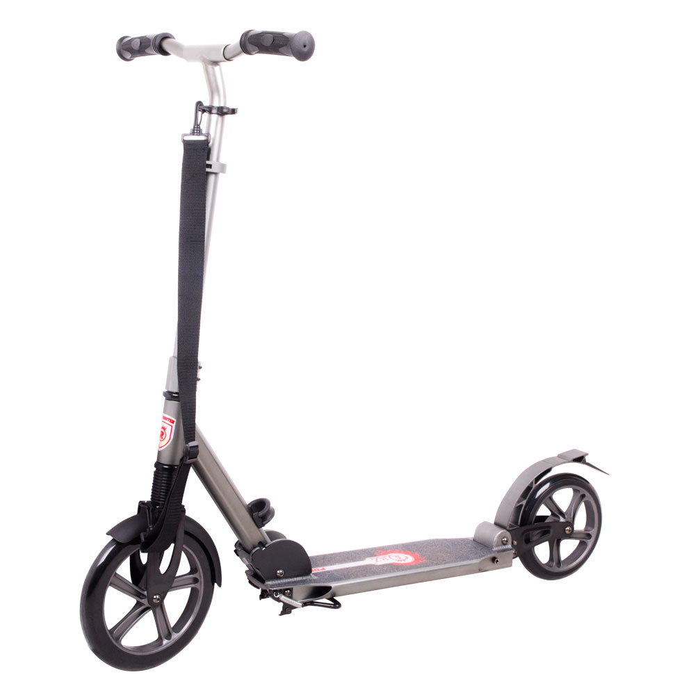 Vďaka systému odpruženia a silnej prednej vidlici zvládne aj zachádzky na horšie povrchy a jazda je tak pohodlnejšia. Kvalitné vysokorýchlostné ložiská ABEC 9, nastaviteľná výška riadidiel a 230/200 mm kolieska vhodné hlavne pre jazdu po asfalte dopĺňajú príjemné a svižné jazdné vlastnosti kolobežky a vysoký stupeň komfortu.