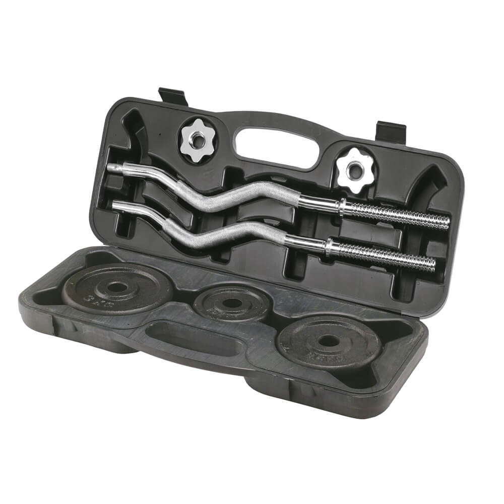 Činkový set v kufri inSPORTline BEZ20 predstavuje výhodnú kombináciu všetkého, čo je potrebné k cvičeniu so zahnutou EZ činkou.