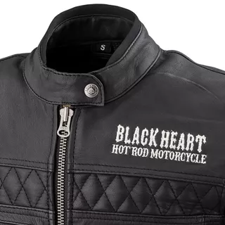 Komfort tejto bundy vyrobenej z mäkkej a poddajnej kozej kože navyšujú elastické prvky zebrovitého tvaru na bokoch, ktoré tak umožňujú čo najslobodnejší pohyb. Vzhľad vcelku klasickej koženej bundy zatraktívňujú dekoratívne prešívané prvky a "muziku" tu ešte pritvrdzujú šité nápisy značky Black Heart.