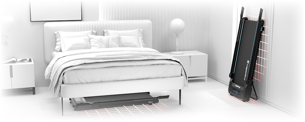 Chodiaci pás inSPORTline Tyrion bol navrhnutý s dôrazom na úsporu miesta. V zloženom stave meria na výšku iba 13 cm, takže ho ľahko zasuniete pod posteľ alebo uložíte za skriňu. Vďaka zadnému stojanu ho navyše môžete bezpečne skladovať aj vo vertikálnej polohe.