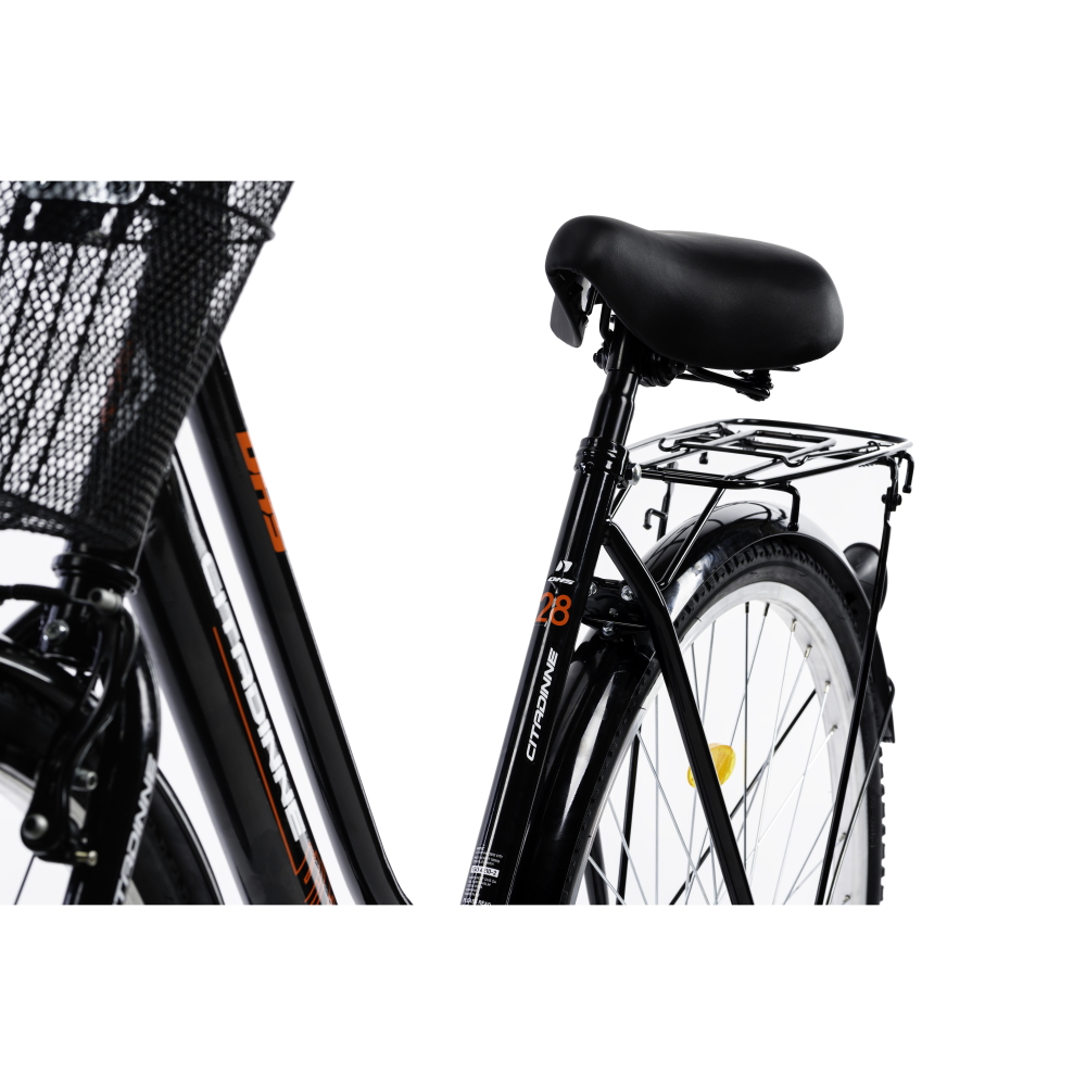 Dámsky mestský bicykel DHS Citadinne 2812 28" 7.0 je moderný bicykel s 20" oceľovým rámom a bohatou funkčnou výbavou. Bicykel je vybavený radom bezpečnostných a funkčných prvkov ako sú blatníky, kryt reťaze, zvonček, košík, súprava odraziek alebo účinné brzdy v kombinácii prednej čeľusťovej a zadnej nábojovej. Vďaka výbornému pomeru ceny a výbavy a atraktívnemu dizajnu je dámsky mestský bicykel DHS Citadinne 2812 veľmi obľúbeným a vyhľadávaným bicyklom ideálnym do mesta alebo na výlety po spevnených cestách.