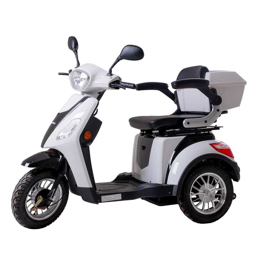 Trojkolka stojí na troch 10" kolesách a istia ju spoľahlivé bubnové brzdy. Pre bezpečný pohyb máte k dispozícii kompletnú súpravu osvetlenia vrátane signalizačných smeroviek. Nechýbajú zadné pomocné kolieska proti prevráteniu. Súčasťou sú aj spätné zrkadlá, praktický držiak na barle alebo dáždnik - vďaka tomu ste dokonale pripravení na pohodovú jazdu po okolí či na nákup.