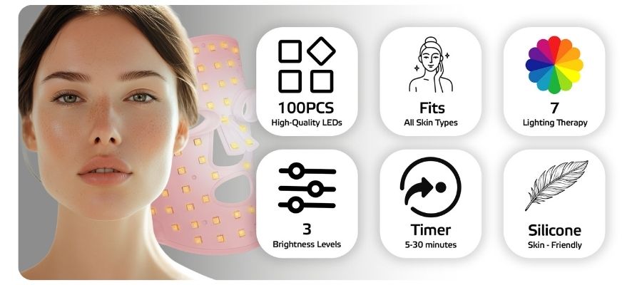 Použitie: Pred použitím pleť očistite vhodným prípravkom, napríklad pleťovou vodou. Masku nasaďte na tvár. Upevnite tak aby priliehala na tvár ale aby netlačila. LED terapiu najskôr spustite na najnižšom stupni, aby ste predišli nežiaducim reakciám v prípade citlivej pokožky. Zvoľte si farbu LED svetla, intenzitu a dĺžku trvania ošetrenia pleti, potom už len relaxujte a nechajte masku pôsobiť. Po ošetrení môžete použiť akýkoľvek hydratačný krém alebo sérum.