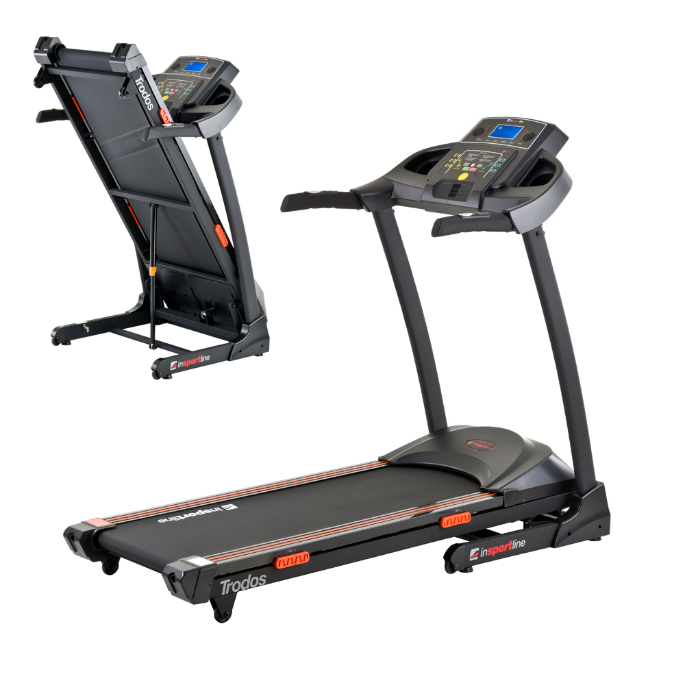 Bežecký pás inSPORTline Trodos je kvalitný bežecký pás určený pre domáce využitie. Pás je vybavený bohatou funkčnou a bezpečnostnou výbavou, medzi ktorú patrí prepracovaný computer, motor o maximálnom výkone 2,0 HP alebo nastaviteľný sklon. Robustná konštrukcia s bežeckou plochou o rozmeroch 123 x 42 cm a nosnosťou 120 kg zaručuje maximálny komfort počas cvičenia. Computer ponúka niekoľko prednastavených programov, užívateľské programy alebo manuálny program, pri ktorom si nastavíte pás presne podľa Vašich predstáv. Bežecký pás inSPORTline Trodos je vybavený aj funkciou merania telesného tuku, ktorá funguje na princípe pridržanie snímačov tepu v rukovätiach. Behom chvíle sa tak dozviete, koľko tuku je vo Vašom tele. Podsvietený LCD displej zobrazuje rad užitočných informácií, medzi ktoré patrí rýchlosť, čas, vzdialenosť, tepová frekvencia alebo počet spálených kalórií. Medzi ďalšie prednosti bežeckého pásu inSPORTline Trodos patrí tichý chod motora, snímač tepu v rukovätiach, maximálna rýchlosť 16 km/h alebo kolieska pre ľahký transport. Vďaka týmto výborným vlastnostiam sa stal bežecký pás inSPORTline Trodoz obľúbeným a vyhľadávaným modelom bežeckého pásu pre domáce využitie.