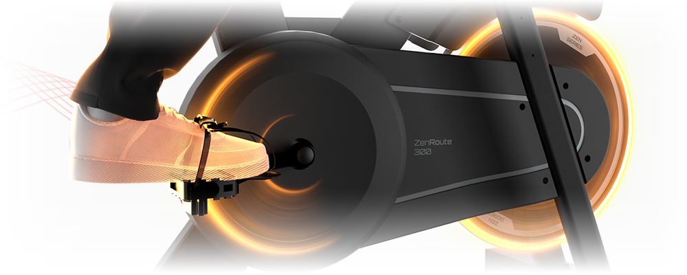 Magnetický brzdný systém v kombinácii s remeňovým pohonom zaisťuje plynulé a mimoriadne tiché šliapanie. Zadný zotrvačník s hmotnosťou 11 kg dodáva jazde prirodzený rytmus a stabilitu, či už idete ľahký výklus alebo intenzívny intervalový tréning.
