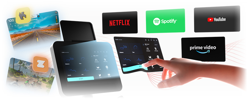 | Multimédiá a aplikácie | Kinomap, Zwift, Fitshow, Netflix, Chrome, Prime Video, X (Twitter), Spotify, Youtube |